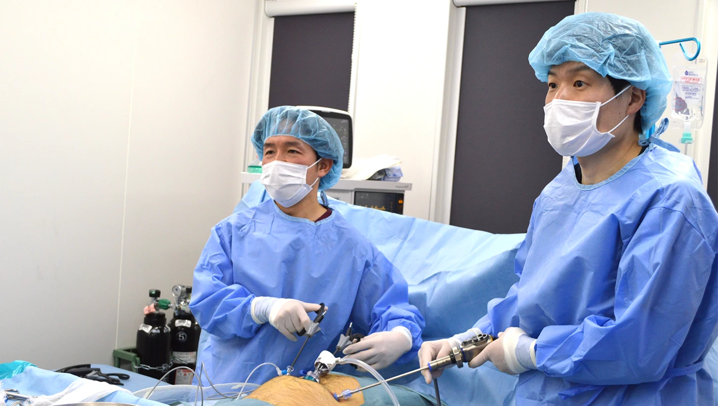 当院では、鼠径ヘルニアの日帰り腹腔鏡手術をはじめ、胃カメラ・大腸カメラ、一般内科、訪問診療まで幅広く対応しています。日帰り腹腔鏡手術における専門性と、一般内科や訪問診療までカバーする汎用性を兼ね備え、「入院以外は、だいたいなんでも診てくれるクリニック」をコンセプトに、日々診療を行っております。